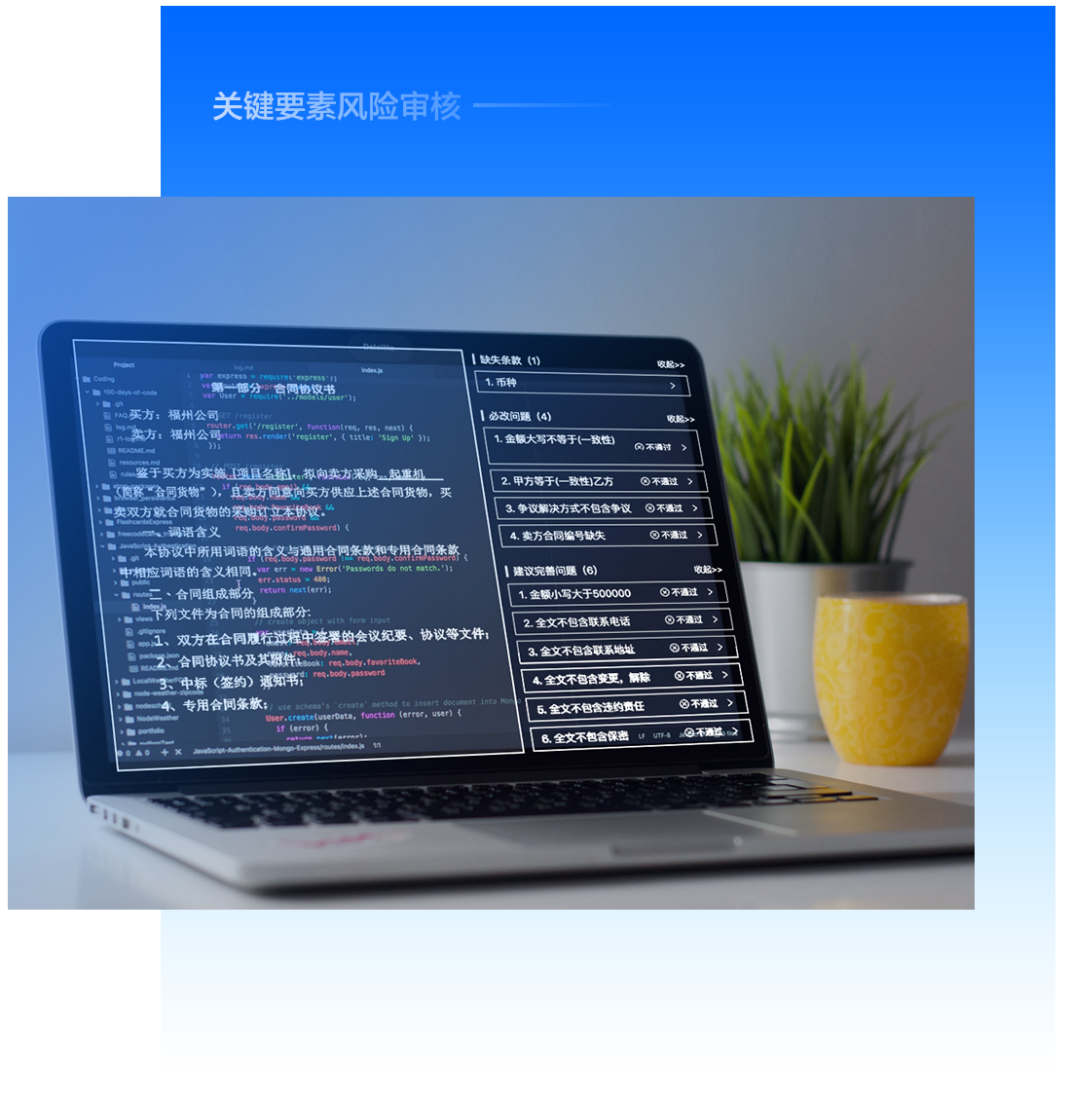 系统内置金融,证券,保险等行业对应的风险规则库,按照风险等级快速识别其中的风险点,并给出判断依据及操作建议
